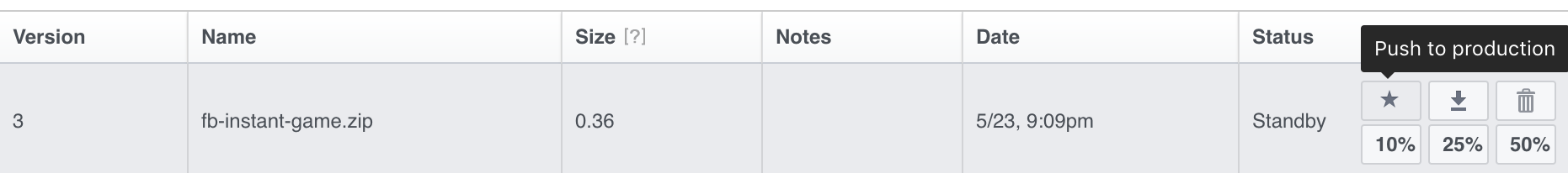 Il est important de le faire même si vous ne voulez pas encore publier le jeu ! Si vous n'avez pas une version marquée avec l'étoile comme étant prête pour la production, vous ne pourrez pas tester votre jeu.