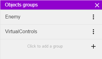 オブジェクトグループにはオブジェクトが含まれ、一つのイベントを使用して、複数のオブジェクトを操作するイベントで使用できます。すべてのオブジェクトの共通機能に関するページで、それらについて詳しく読んでください。