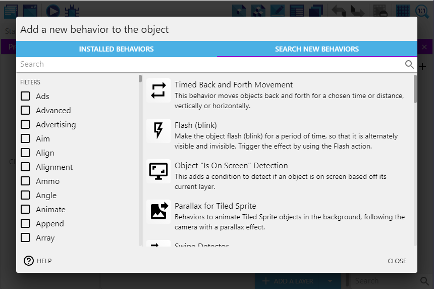Qualquer pessoa pode criar comportamentos personalizados e compartilhá-los com a comunidade GDevelop.