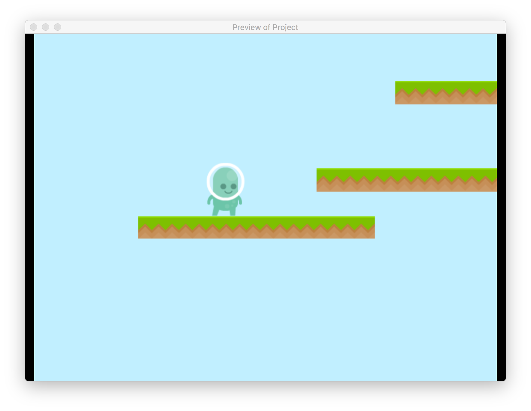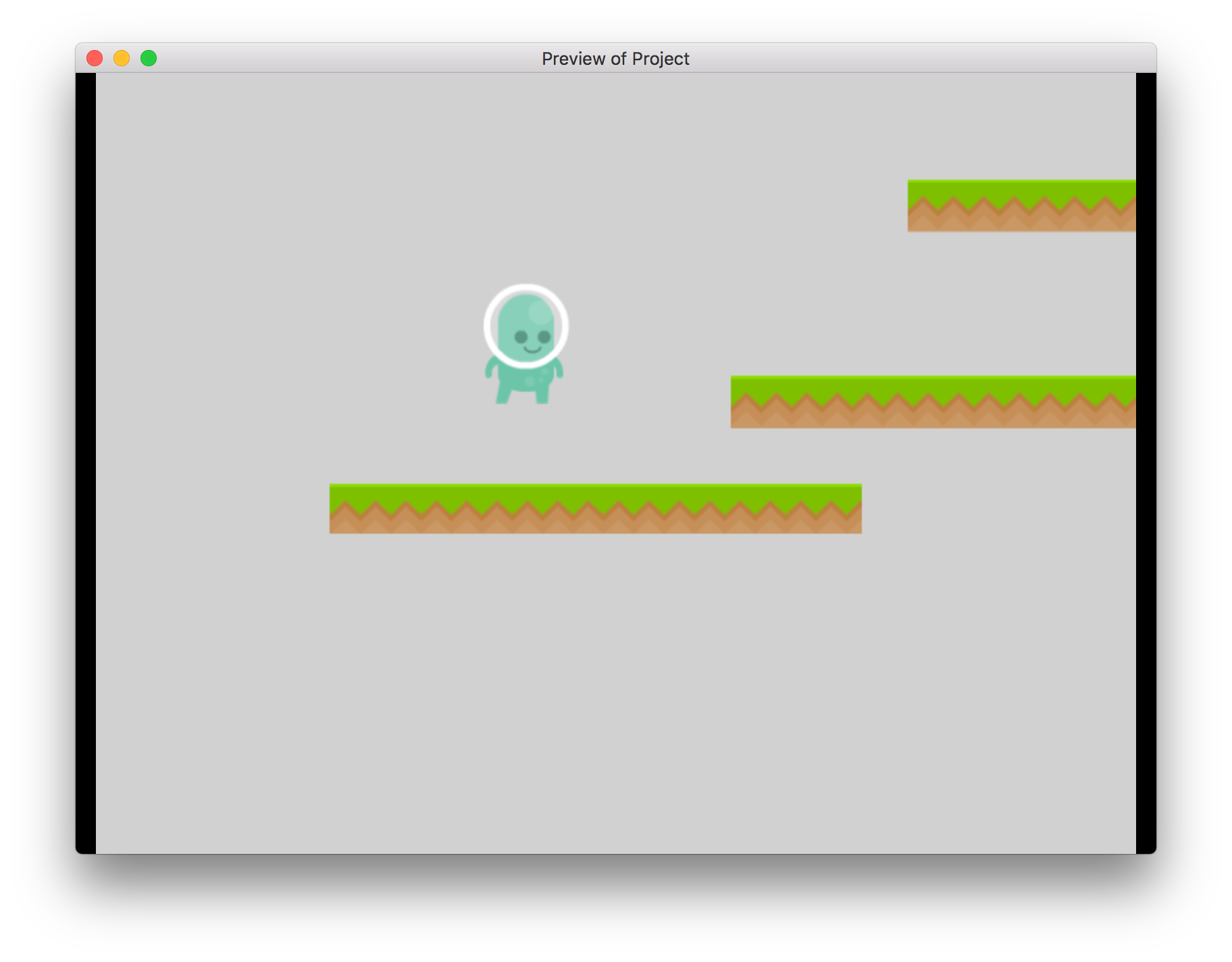 您应该可以使用默认键来走动和跳跃:使用箭头键移动字符,然后按“Shift”或“Space”来跳跃!请随意添加一些其他平台到场景中,就像我们以前做的那样。确保将行为添加到平台中,以避免角色失败。