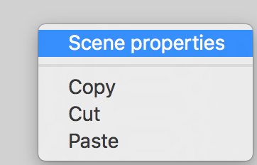 灰色的背景有点乏味。稍后我们可以添加一个图像,但现在,让我们保持简单。在编辑器中,右键单击灰色背景并选择“场景属性”: